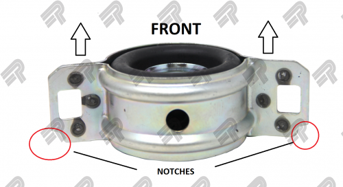 The notch in the bearing bracket goes to the rear of the driveshaft.